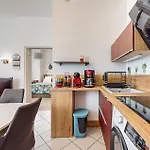 The apartment provides coffee and tea making equipment and a fully furnished kitchen with a refrigerator, an oven, and kitchenware. There is Royan - Gare bus station just a short stroll from the 40 m^2 apartment.
